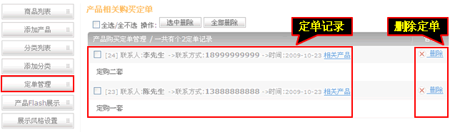 5、定單管理可以對定單進行查詢、刪除