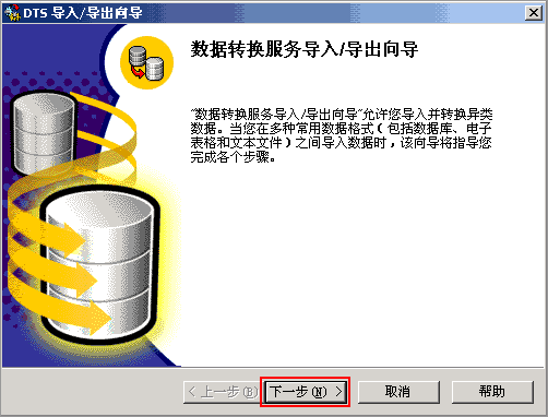 2. 進入DTS導入/導出向導,點擊“下一步”按鈕繼續