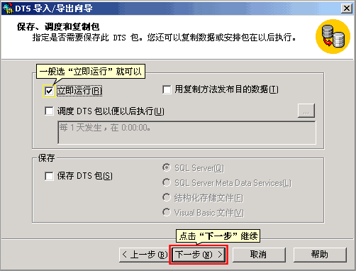 7. 設定調度方式,一般選“立即運行”就可以,然后點“下一步”繼續