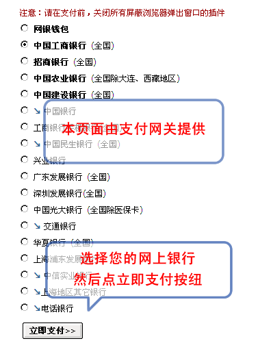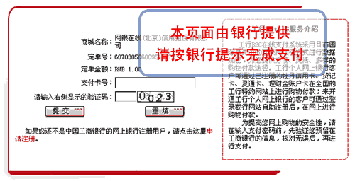 5、進入銀行網站,開始支付,以下以工商銀行為例,其它類似