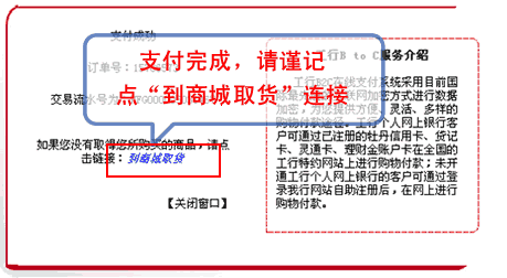 6、支付完成,請點“到商城取貨”連接,請謹記進行此操作,否則可能掉單!!