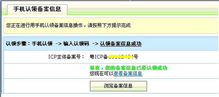 3 步:備案信息通過(guò)手機(jī)認(rèn)領(lǐng)成功